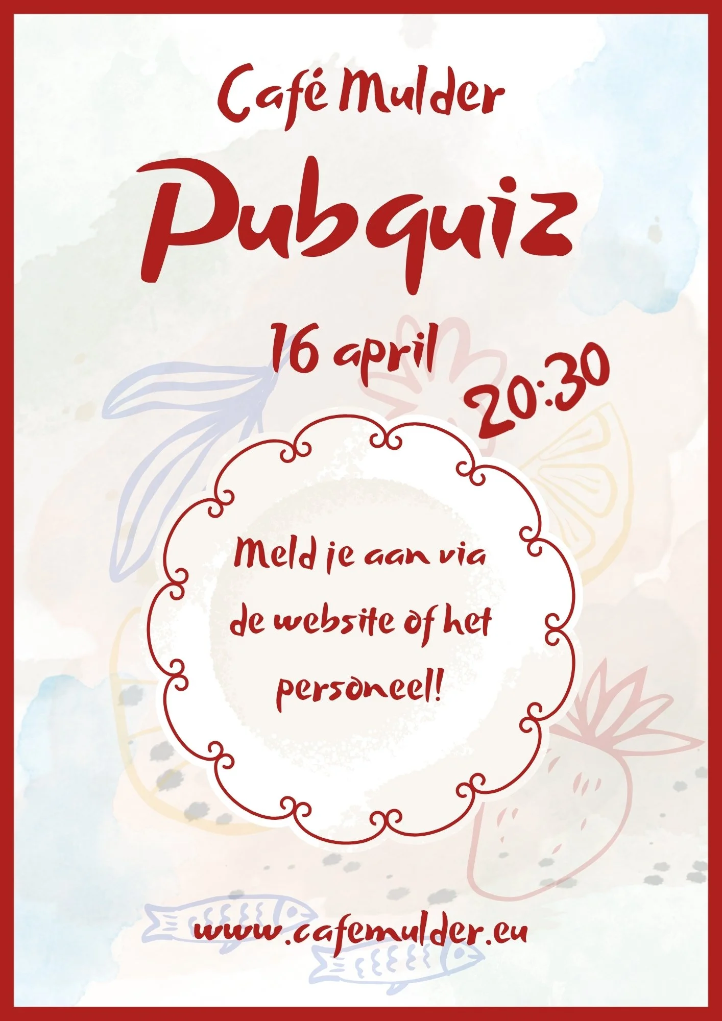 Pub Quiz Aanmeldformulier Pub Quiz 16 april 20:30 Laat mij weten wanneer de volgende Pub Quiz is Laat je emailadres achter en wij brengen je op de hoogte. Email Address Stuur mij een update Bedankt!